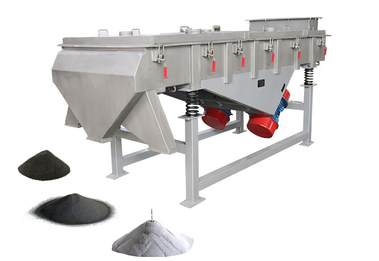 直線振動篩簡稱直線篩,其主要功能是分級、過濾和除雜,以兩臺振動電機為振動源,使物料在篩面上直線跳躍,物料均勻進入篩面,各種規格的物料通過多層矩形篩網產生并從各個出料口排出。